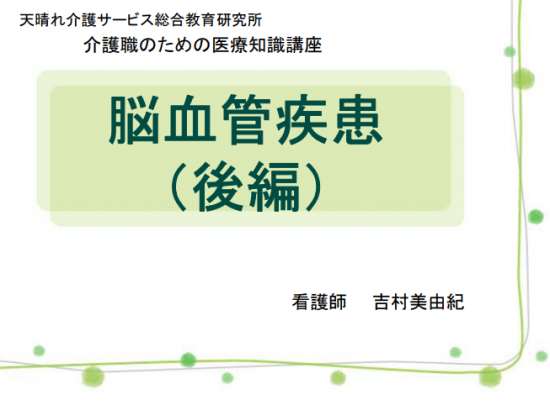 【動画レンタル】 介護職のための医療知識講座「脳血管疾患その2」