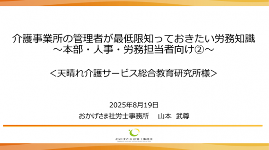 山本先生の「本部・人事・労務担当者のための労務知識(後編)」